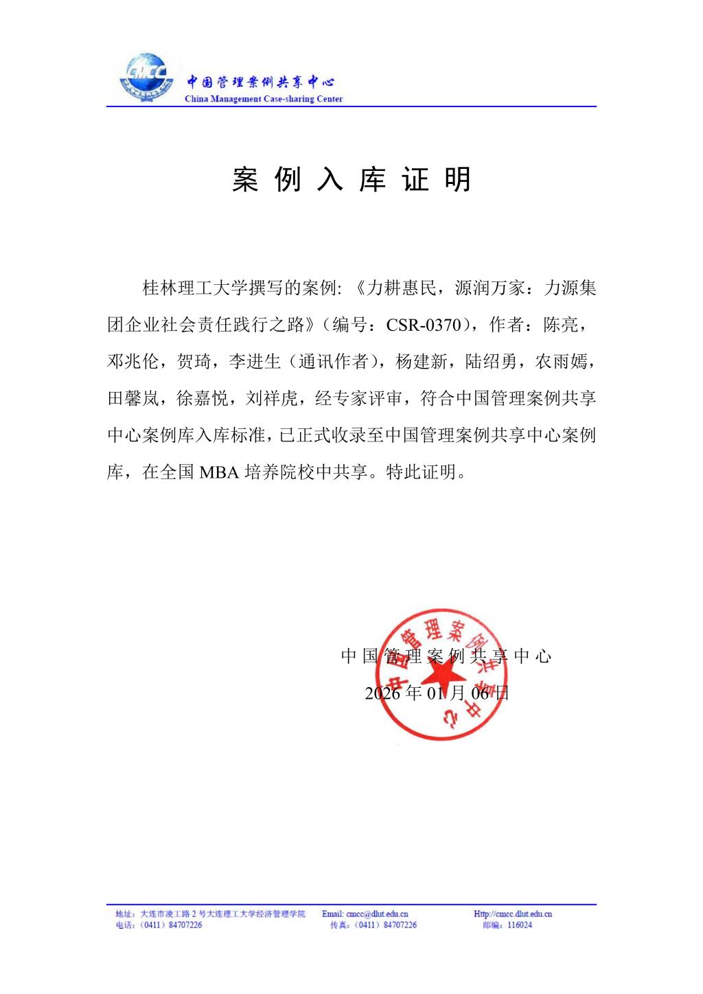【喜报】我院陈亮教授开发的案例成功入选中国管理案例共享中心案例库
