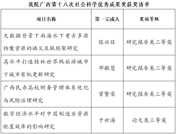 喜报!我院四项成果荣获广西第十八次社会科学优秀成果奖