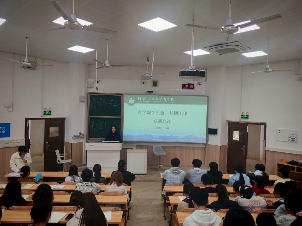 3月19日,学院在雁山校区07319召开学生会、社团工作专题指导会。学院团委副书记岑甜甜主持会议,学生会全体成员、社团组织负责人参会。会上,岑甜甜回顾了上一阶段工作,肯定了各组织在学风建设、文体活动、志愿服务等方面的成效,同时指出了统筹协同不足、活动创新不够、服务精准度不高等问题。同时针对后续工作,提出三点要求:一是强化思想引领,锤炼团学骨干作风,提升履职能力;二是聚焦服务核心,精准对接学生需求,打造...