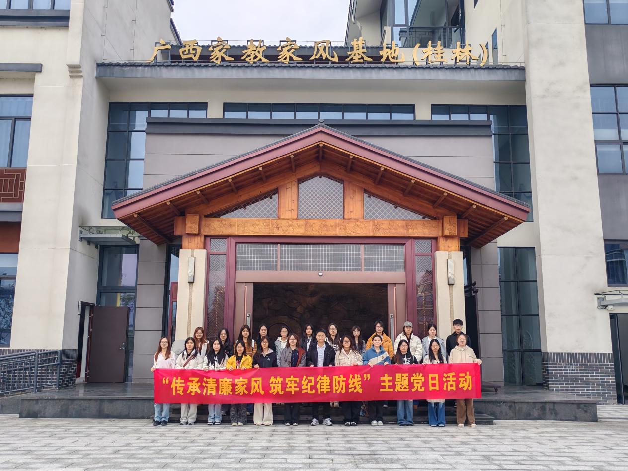 为深入学习贯彻党的二十大和二十届历次全会精神,贯彻落实二十届中央纪委四次全会精神,进一步推进校园廉洁文化建设,12月19日上午,学院党委组织60余名师生党员代表前往广西家教家风基地(桂林),开展了“传承清廉家风,筑牢纪律防线”主题党日活动。本次主题党日活动由工管学生党支部、电商学生党支部、物流房产学生党支部承办。