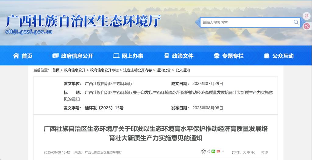 政策下载链接:http://sthjt.gxzf.gov.cn/zfxxgk/zfxxgkgl/fdzdgknr/hbzw/gwtz/t23392106.shtml