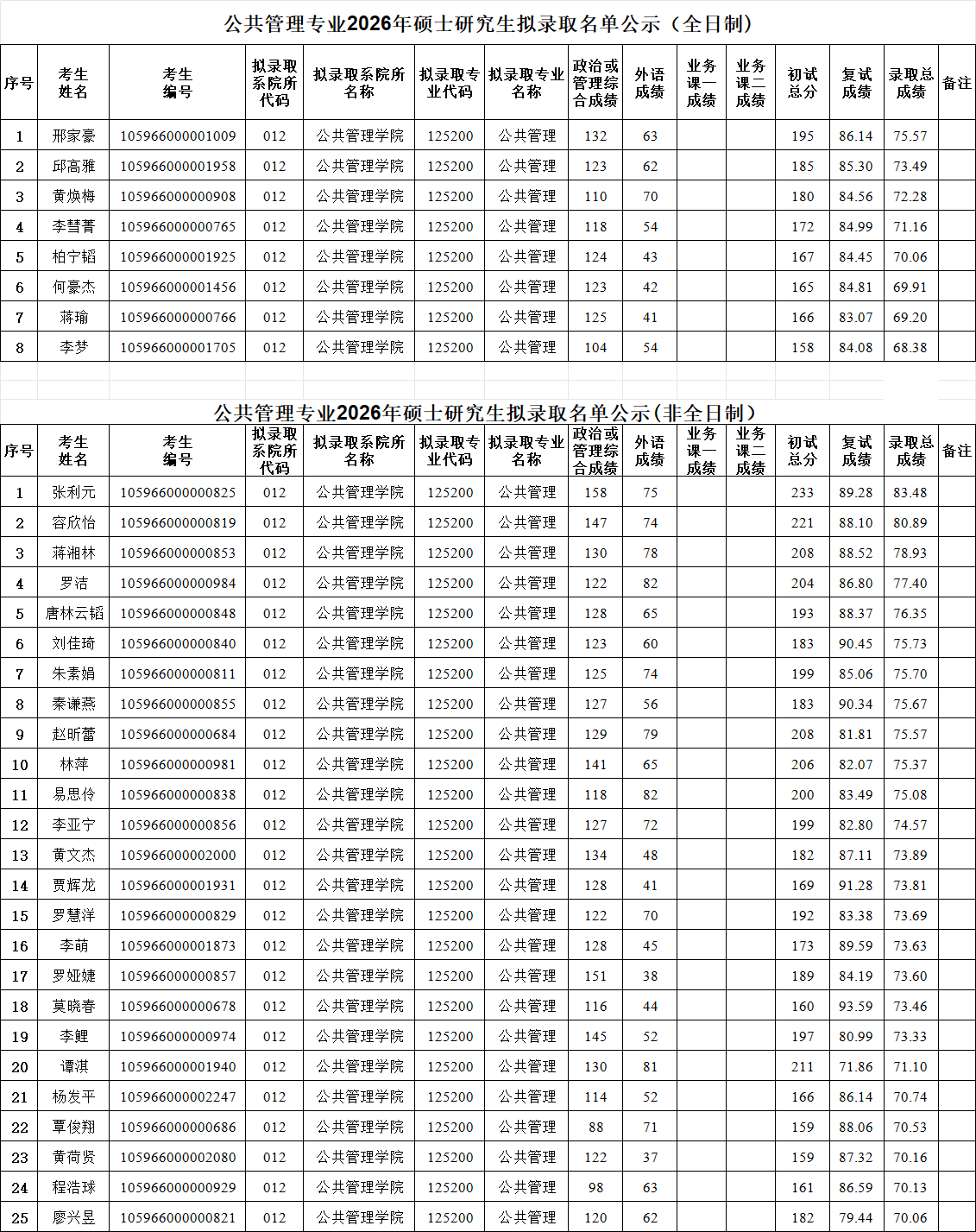 根据《2026年全国硕士研究生招生工作管理规定》及教育部相关文件规定,现对我院公共管理专业2026年硕士研究生拟录取名单进行公示,公示期:2026年3月28日至4月4日。有异议者,请在公示期内以书面形式,并署真实姓名和联系电话,向我院纪委或我院办公室反映,不署真实姓名的,不予受理。联系电话:0773-5892136(纪委),0773-5893657(办公室),电子邮箱:duxingfa2015@163.com。公示名单如下:
