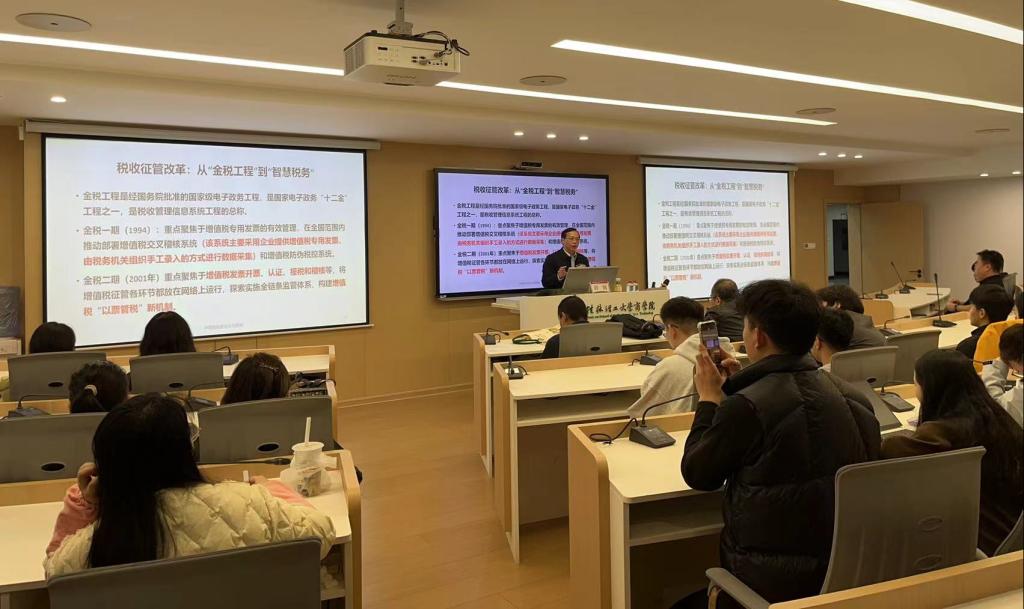 12月6日晚,中南财经政法大学财政税务学院教授、博士生导师、注册会计师薛钢老师,应邀到我院作题为“新征管形势下企业涉税风险与税务合规”的学术讲座,学院教师和研究生代表50余人参加讲座,讲座由学院党委副书记、院长李雷主持。讲座中,薛钢老师立足《关于进一步深化税收征管改革的意见》提出的“智慧税务”建设、“信用+风险”新型监管机制等背景,系统解析了金税四期全面推开后企业面临的全新税务合规挑战,指出了当前税...