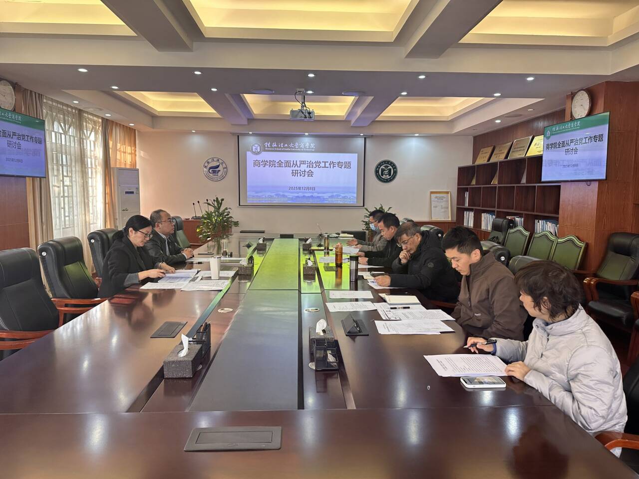 12月8日上午,学院在屏风校区7206会议室召开全面从严治党专题研讨会,学院党委书记白凌婷主持会议并讲话,学院班子全体成员参加会议。会上,学院党委副书记、纪委书记饶蠡对目前学院全面从严治党工作进行了汇报,传达《关于开展深入贯彻中央八项规定精神学习教育“回头看”的通知》文件精神。白凌婷在总结讲话中指出,学院党委必须切实担负起全面从严治党主体责任,将严的要求、严的标准、严的举措贯穿于学院党建和事业发展的全...